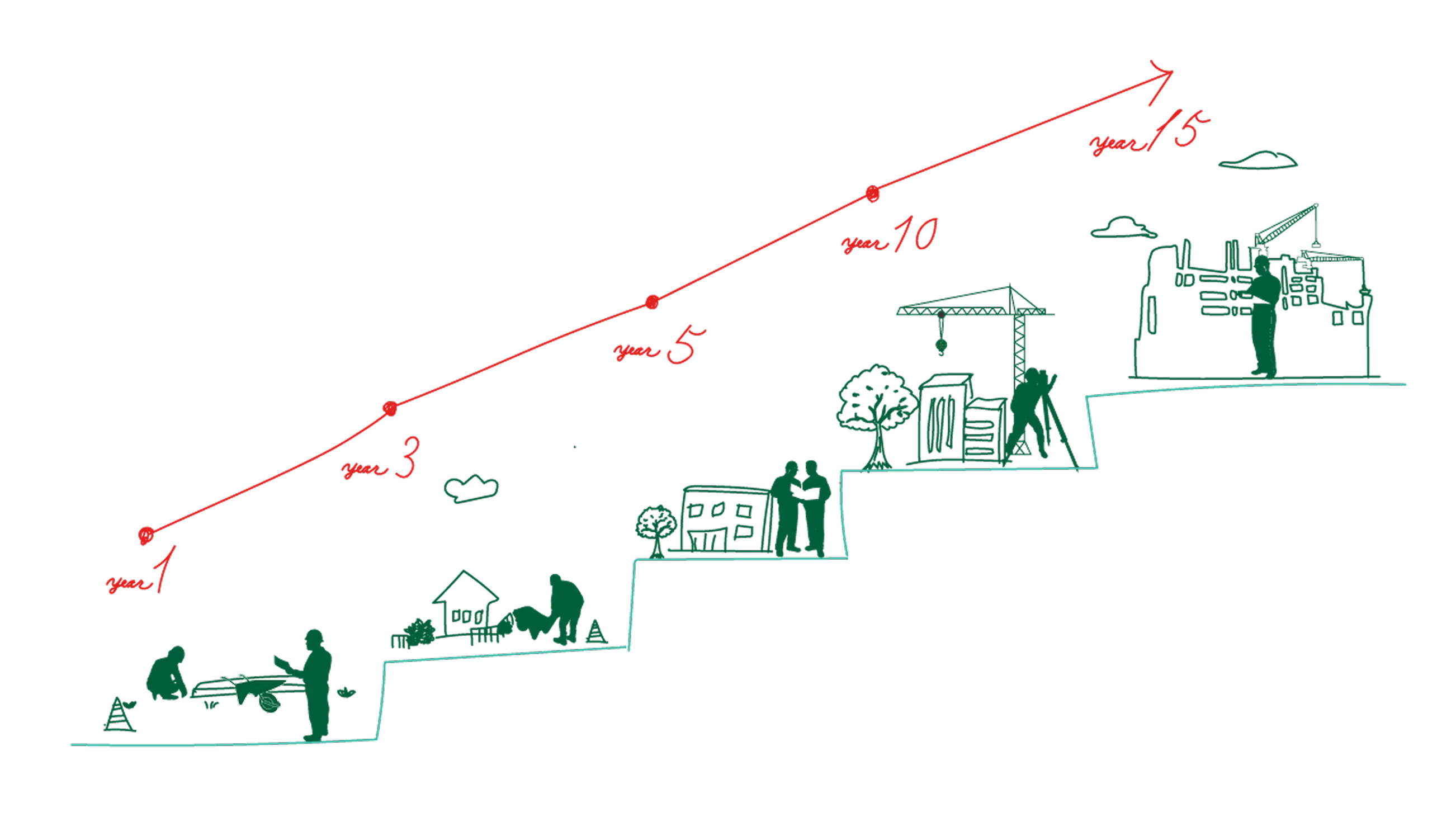 小規模(住宅)の現場の管理を経験を積む。資格取得(施工管理技士2級)