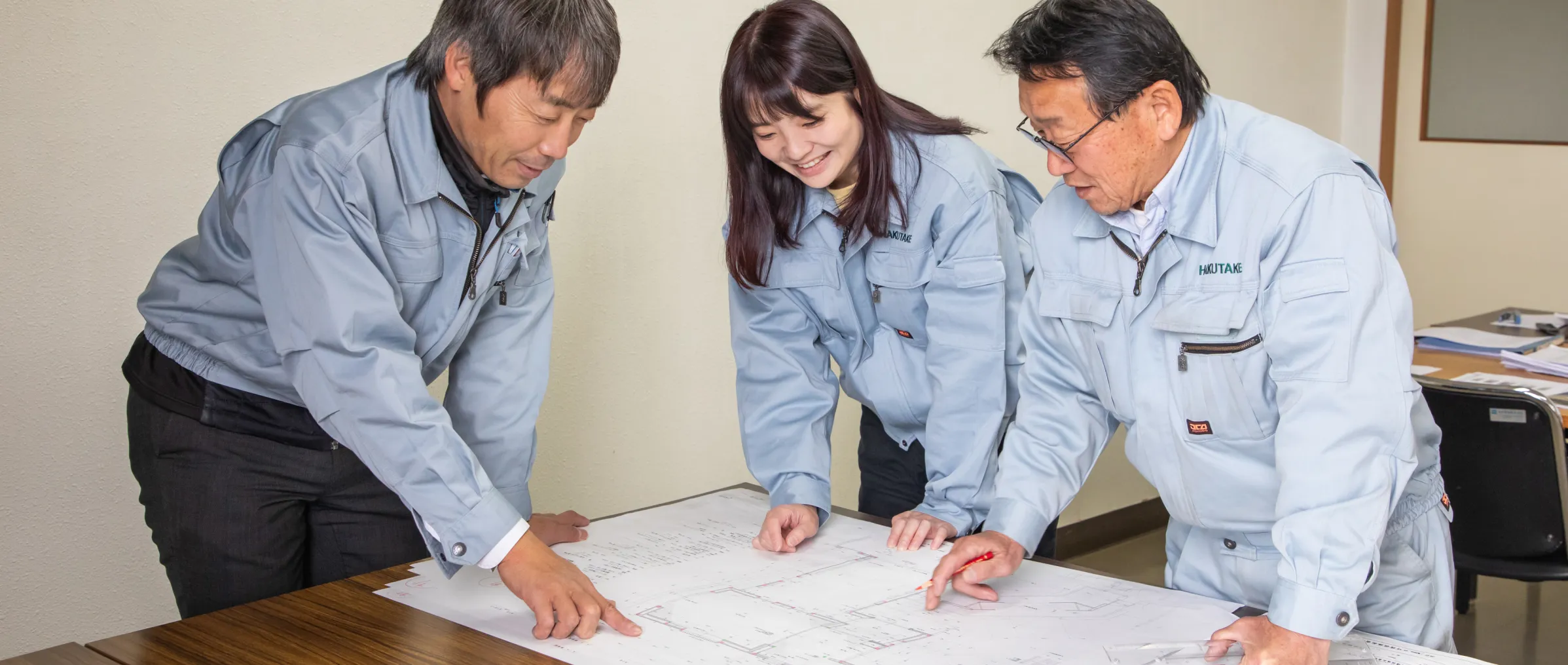 現場監督補助として先輩監督の元で現場管理の基礎を学びます。